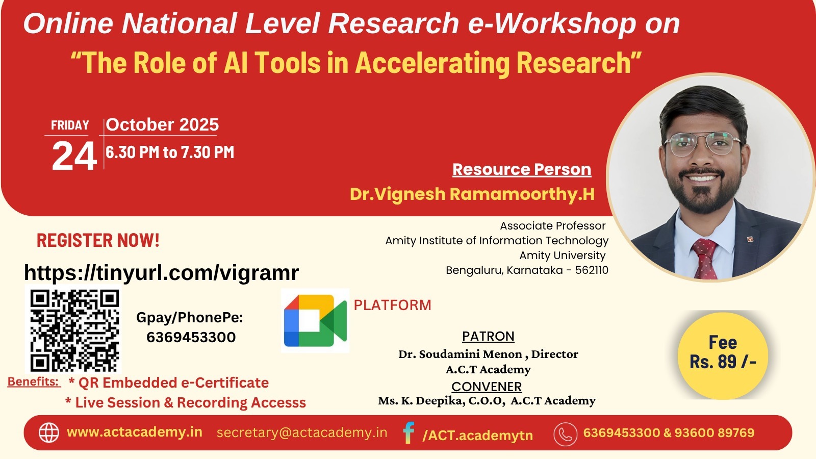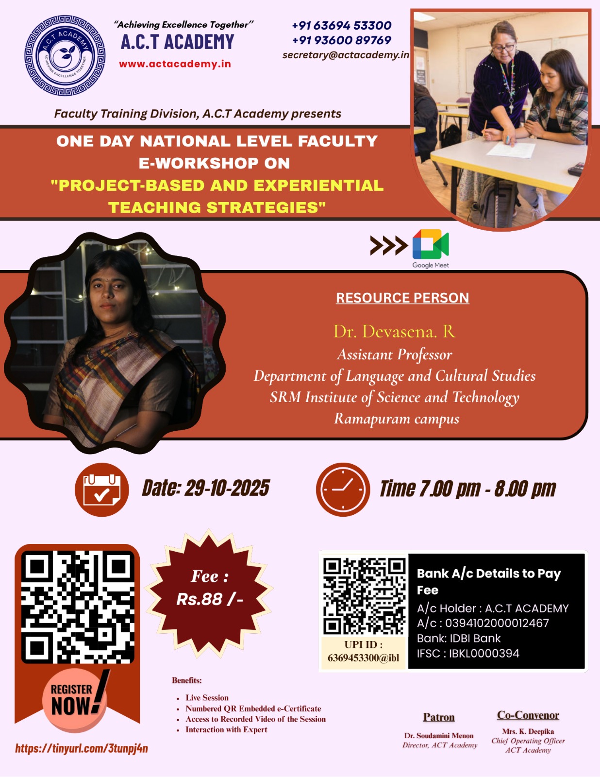 The A.C.T. Academy is a registered organisation and initiative that aims to improve and promote skills among research scholars and teaching professionals in a wide range of fields. The Academy serves as a link between academia and the industry, with the goal of equipping students, teachers, and professionals working in educational field with the knowledge and abilities they need to succeed in fields that are constantly evolving.